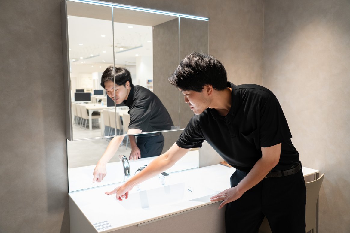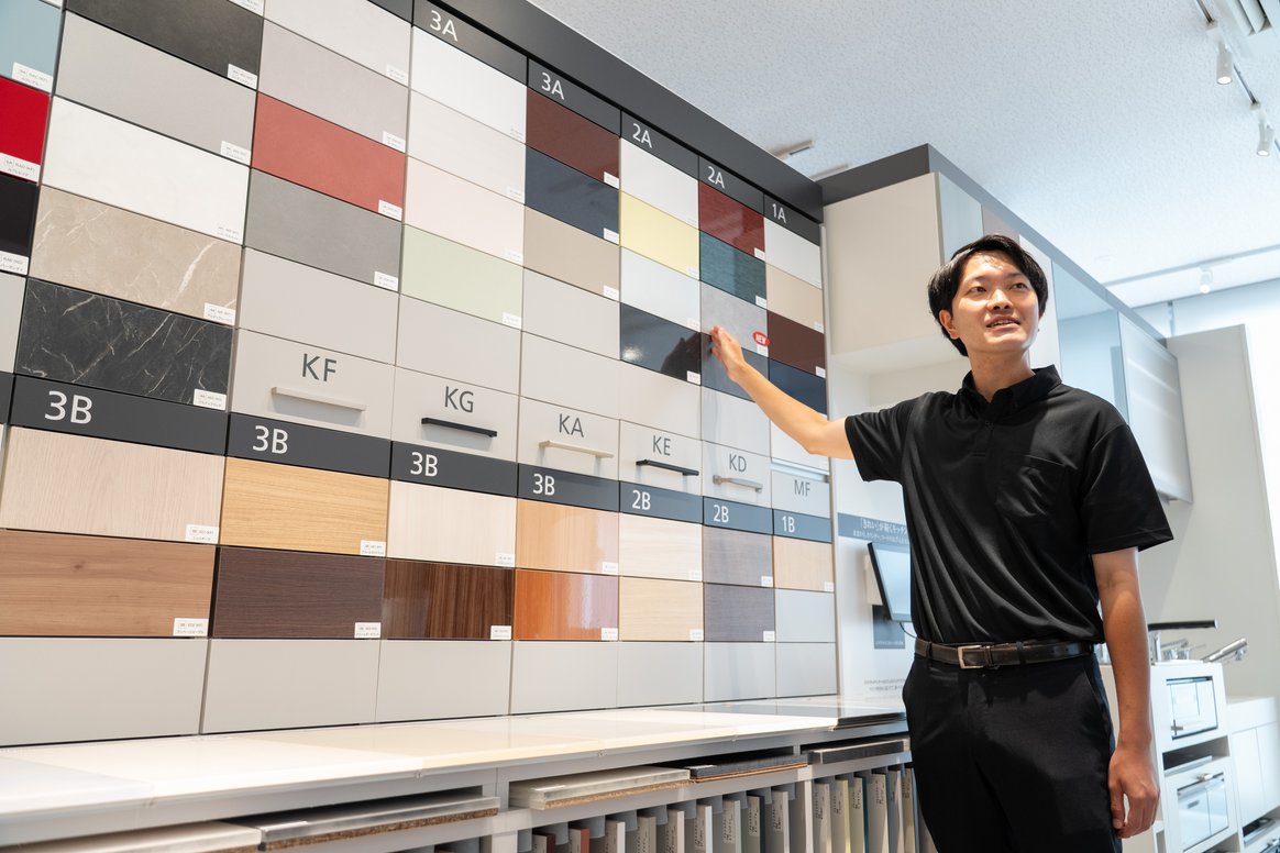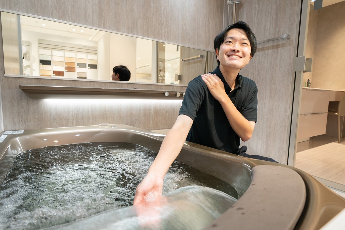 入社後に感銘を受けたのは、想像以上に充実した新人研修でした。約1か月半にわたり、商品研修からマナー研修、接客のロールプレイングまで多彩な内容を学習。また、同じショールームの同期と一緒に受講だったので、質問しやすい環境でしっかり学べました。前職の家電とはまったく異なる建築系の知識や、トイレ、浴室、キッチンまでTOTOの全商品の基本的な知識を身につけられたことは、SRADとしての基礎になっています。