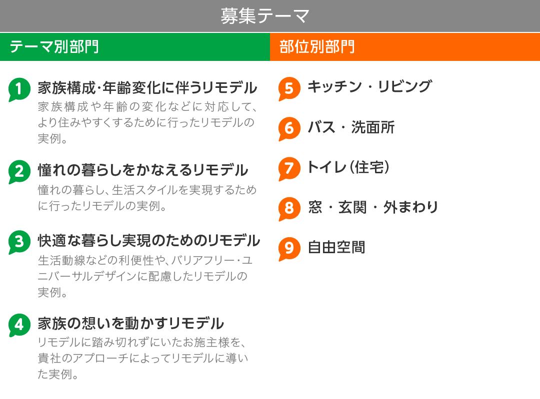 ※「部位別部門」を選ばれた場合に限り、同一現場をリモデルした部位ごとに応募することが可能です。