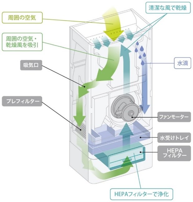また、空気清浄機で使われているHEPAフィルターを搭載することで、より清潔な風で快適に手を乾燥できます。