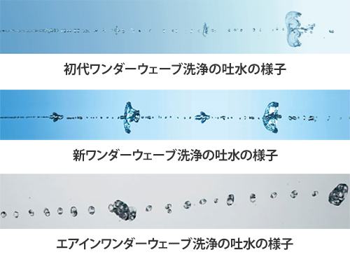 その後、2009年には「新ワンダーウェーブ洗浄」が登場し、より強さと量感のある水玉を生成することで洗浄感をさらに向上させました。2017年には「エアインワンダーウェーブ洗浄」が発表され、水玉の中に空気を混入させることで、洗浄感とボリューム感を両立させる技術が確立されました。