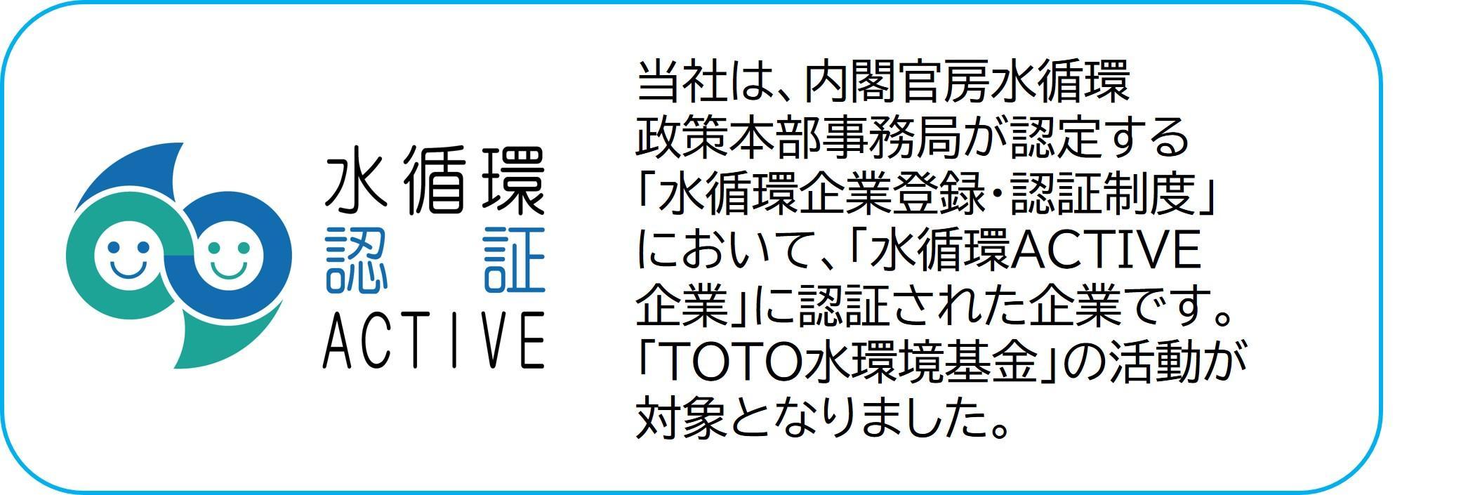 TOTO水環境基金の取り組みが、内閣官房水循環政策本部事務局が認定する「水循環企業登録・認証制度」において「水循環ACTIVE企業」に2年連続で認証されました。