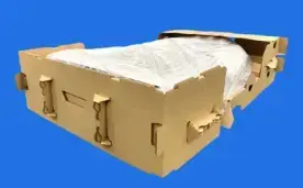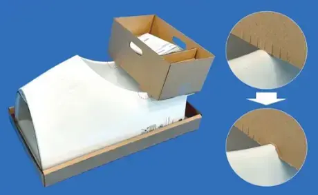 「省材料・省工数で高緩衝力を実現した汎用ソフトタッチ段ボール緩衝材」はウォシュレットの包装材に使用する緩衝材です。