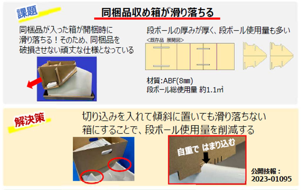 これにより、段ボールの厚みを薄くし、使用量を約80%削減してCO2排出量も大幅に減少した。