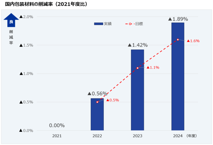 建築現場における廃棄物発生量の削減を目的として、3R(リデュース、リユース、リサイクル)を原則としたTOTO独自の包装設計ガイドラインを策定し、積極的に包装材料の削減に取り組んでいます。2024年度は包装材の材質変更などにより2021年度比1.89%(目標値:1.6%)の削減を達成しました。