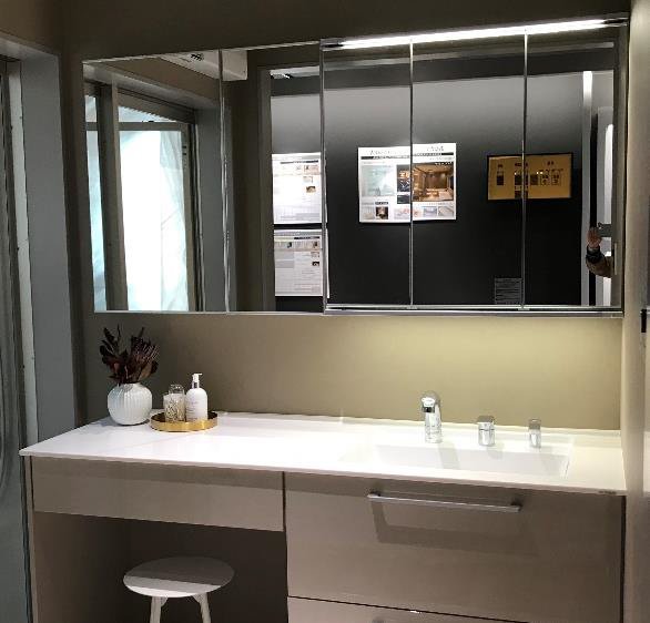 システムドレッサー「エスクア」は、セミオーダー感覚で洗面空間をカスタマイズできる最上級シリーズです。空間に広がりをもたらす「フローティングデザインキャビネット」や、陶器製の「ベッセル式洗面器」、フラットな形状で調色機能が空間を演出する「木製化粧鏡(上下LED)」など、デザインと質感にこだわった上質な洗面空間を演出します。