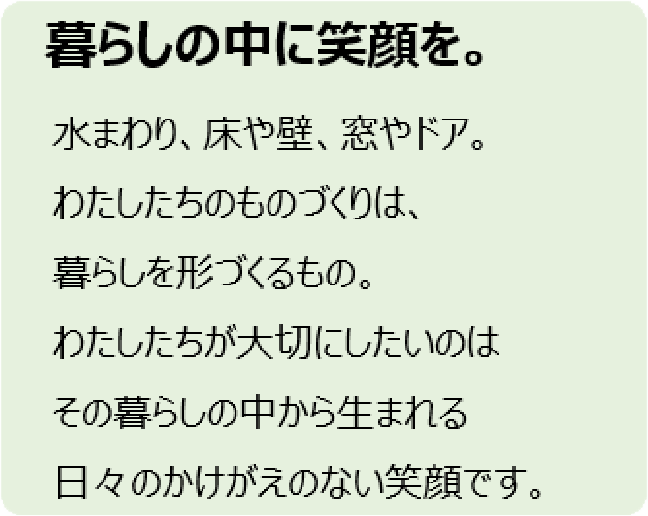お客様一人ひとりの「暮らしの中に笑顔」が生まれることを目指す想いを込めたメッセージです。