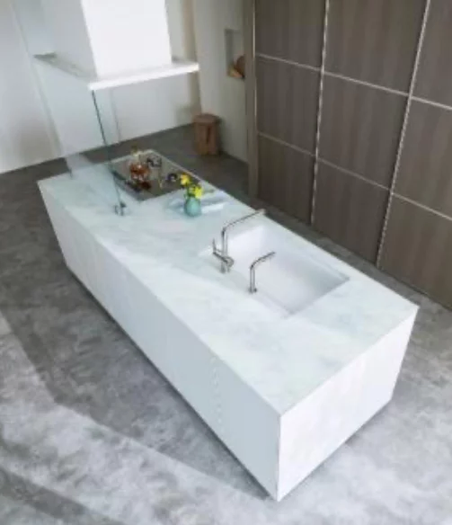 柔らかく浮かび上がる大理石調の柄が洗練された高級感とあたたかさを演出。キッチンで過ごす時間に、豊かな気分とくつろぎをもたらします。