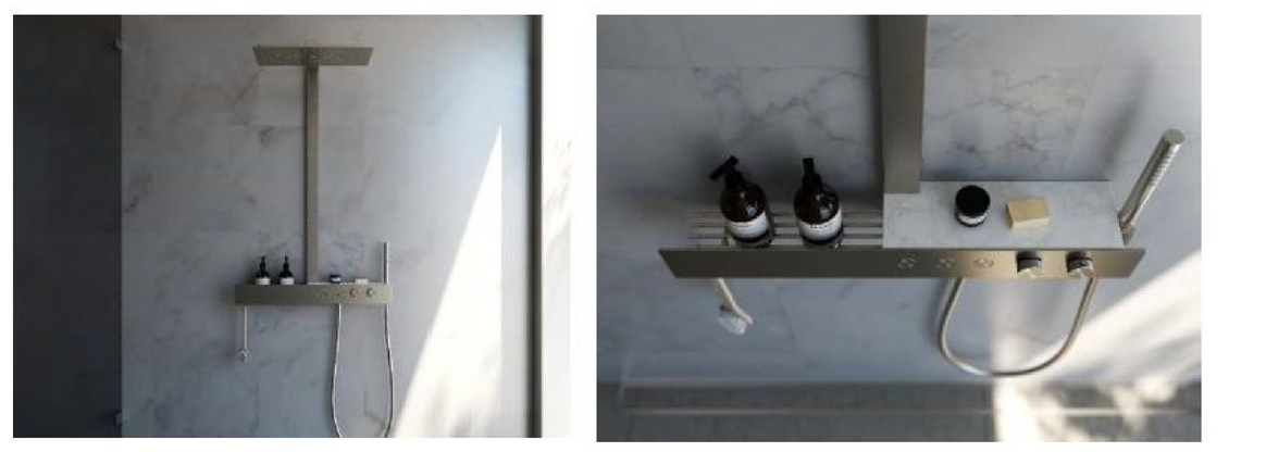 豊かな浴び心地のシャワーヘッドとハンドシャワーを備え、シャンプーやボディソープ、ブラシなどの収納機能もあるオールインワンのシャワーセットです。水平垂直基調としたミニマルなデザインでありながら、リッチなサイズで高級レジデンスのラグジュアリー空間にも美しく溶け込みます。小物収納スペースや操作部は、使い勝手や使用動線に配慮しています。本体カラー5色・収納棚天板カラー2色からお選びいただけます。