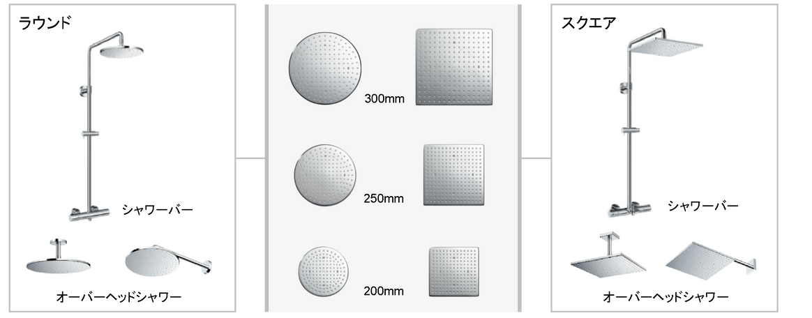 シャワーバーおよびオーバーヘッドシャワーの金属タイプで、「浴び心地の良さ」を意識した散水板デザインにリニューアルします。お客様のお好みの空間に対応するサイズ展開、天吊りタイプへの対応など、品揃えを拡充しました。見た目も更に美しく、豊かなシャワー吐水を感じられるデザインです。