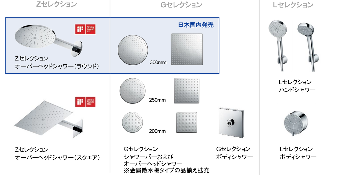 最上位グレードの「Zセレクション」に、スクエアとラウンドの「オーバーヘッドシャワー」を新たに追加します。