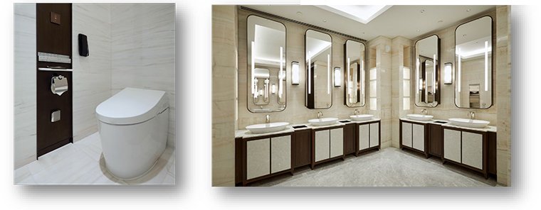 上海市浦東地区にある SHANGRI-LA QUINTAN SHANGHAIはオフィス、商業施設、ホテルなど様々な機能を統合した大規模な国際ビジネスエリアに位置しています。28階建て585室もの客室を有しています。上海の文化と「緑の自然」を取り入れたデザインコンセプトで、客室にはTOTOネオレストやウォシュレットだけでなくハイレンジの洗面器、水栓金具のシリーズが採用されています。