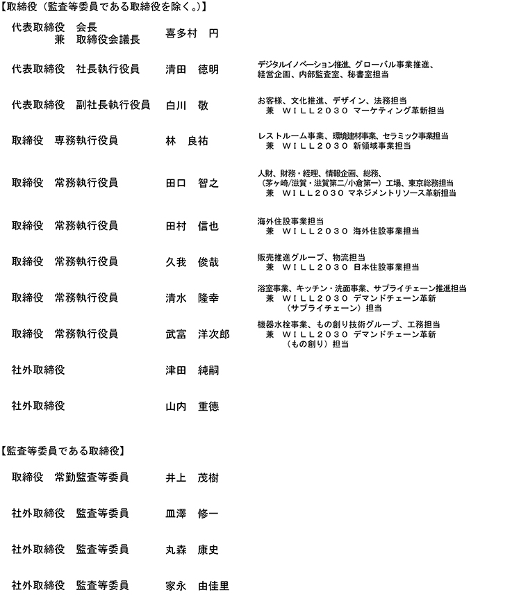※ 代表取締役および取締役の執行業務は、第157期定時株主総会後の取締役会の決議を経て決定予定です。