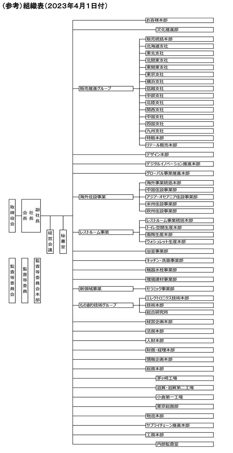 2030年に実現したい暮らしや社会・環境を明確化した「新共通価値創造戦略 TOTO WILL 2030」 (以下、WILL2030)に、スピードを上げて取り組んでいくため、2023年4月1日より 新体制にて推進いたします。これに伴い、組織改正および職位任命を行います。