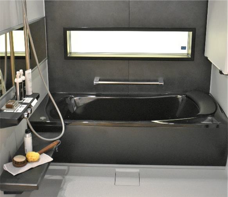 システムバスルーム「シンラ」は、究極のリラックス・リフレッシュにこだわった商品です。人間工学をもとに入浴する人をやさしく包み込む「ファーストクラス浴槽」を標準搭載しています。
