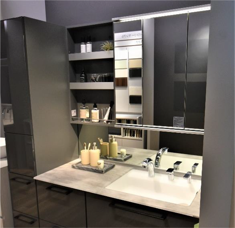 ショールームでは、「シンラ」と「エスクア」の浴室・洗面空間コーディネートを実際にご覧いただけます。