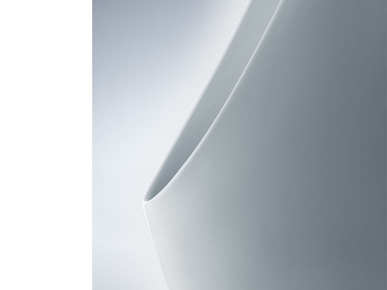 小便器上部の段差がなくなることでボウル内を確認しやすく、便器に近づいて立てるため、尿だれ軽減につながります。リップラインは人を迎え入れる美しいカーブ形状を描き、ひとりでも多くの人に使いやすいよう配慮しています。