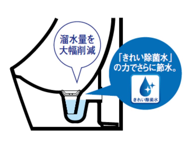 トラップ※2の小型化により、尿を含んだ汚水を少ない水量で効率よく置き換えることができます。また、夜間などの長時間使用されない時間帯を自動判断して、定期的にTOTO独自の「きれい除菌水」をトラップ内に満たして除菌することで、汚れや菌の発生を抑制し、超節水を可能にしました。