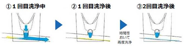 排水管内に滞留した尿を洗浄。洗浄水の一部は上流側へ逆流し滞留。