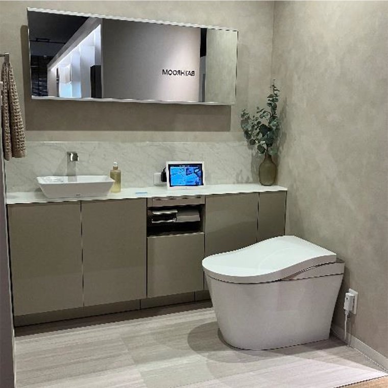 フロア面積を従来よりも拡張し、「きれいと快適」「環境」を両立するTOTOらしい商品「サステナブルプロダクツ」を多数展示いたします。特に、システムキッチン「ザ・クラッソ」を自然光あふれる窓際に配置することで、特長である明るく透明感のあるカウンターを体感いただけます。加えて、美しいデザインにTOTO独自のクリーン技術を搭載したウォシュレット※1一体形便器 「ネオレスト」など、最新の水まわり商品とあわせて、リモデル※2後の“あこがれの暮らし”をイメージしながら、見て、触って、ご確認いただけます。
