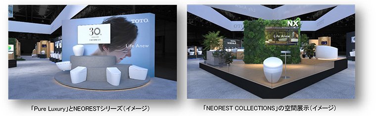 このコーナーでは、「NEOREST」のブランドメッセージ“Pure Luxury”の世界観を表現した動画や、グローバル統一モデルのNEORESTシリーズを一斉展示。機能とデザインを融合した最上位クラスのバスルーム空間「NEOREST COLLECTIONS※5」の展示では、NEORESTフラッグシップモデル「NEOREST NX」を中心に、究極のリラクゼーションを追求する画期的な浴槽「FLOTATION TUB」、水はねの少ない水を柱のようなシャワー水流で体を水の膜で包み込み体の芯まで温めるシャワー「WARM SPA」を組み合わせ、“Life Anew”を体現する上質なライフスタイルを提案します。