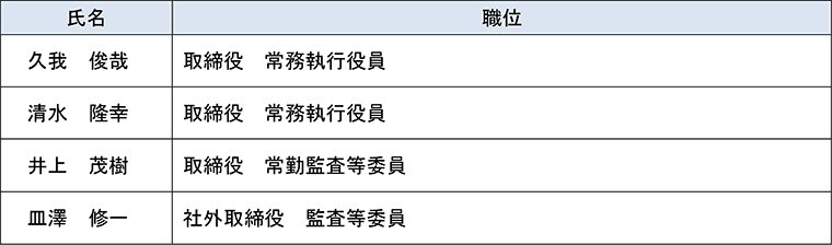 久我俊哉氏、清水隆幸氏、井上茂樹氏は取締役退任後、顧問に就任予定です。