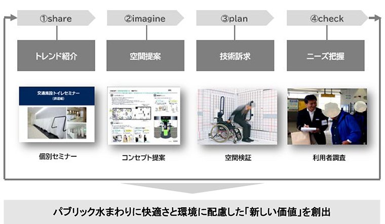 不特定多数の人々が利用するパブリックレストルーム※3には、時代とともに求められる様々なニーズや課題が存在します。テクニカルセンターでは、これらのニーズ・課題に向き合い、専門家のお客様と共にコラボレーション(共創)し、より使いやすい、快適な水まわり空間を生み出してきました。