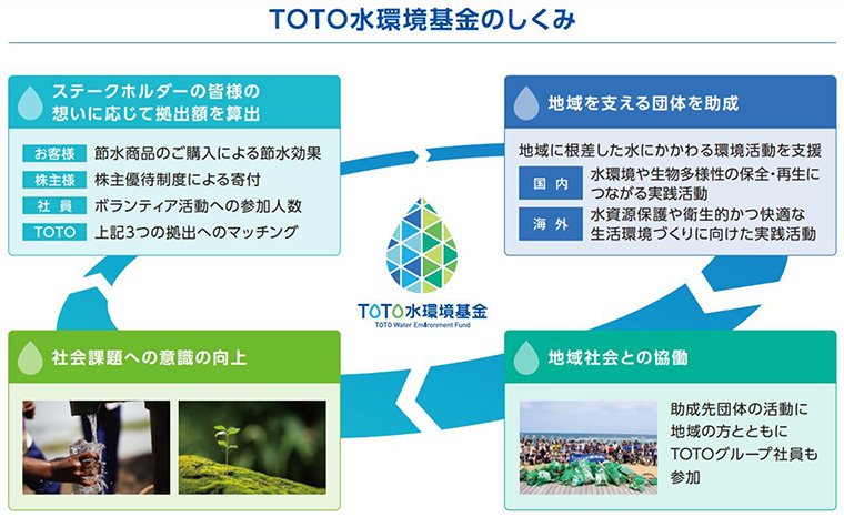 TOTO水環境基金とのかかわりをきっかけに、社内外のステークホルダーの社会課題に対する意識が向上し、活動の輪が大きく広がっていきます。