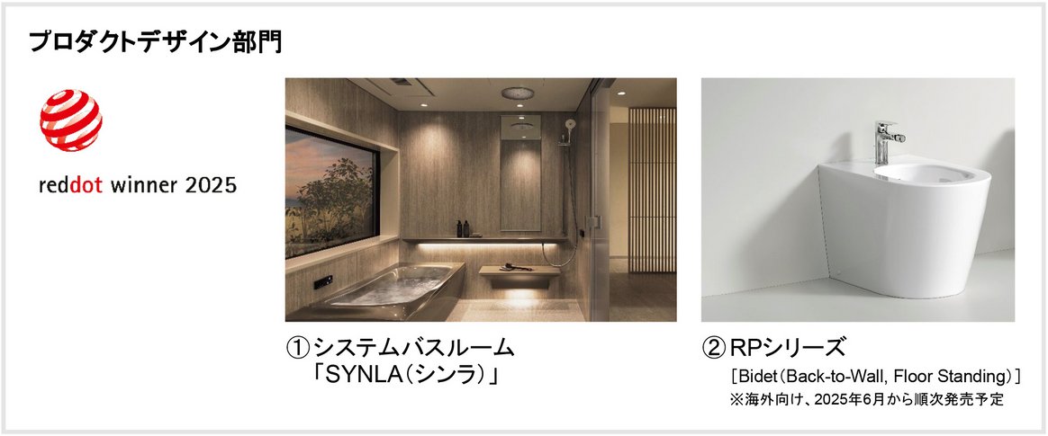 TOTO株式会社(本社:福岡県北九州市、社長:田村 信也)のシステムバスルーム「SYNLA(以下シンラ)」など3点が、国際的に権威のある「レッドドット・デザイン賞2025」を受賞しました。TOTOは今回で13年連続の受賞となります。