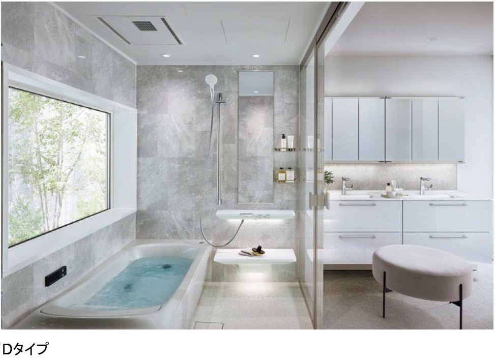 シンラのマテリアルは、鮮やかさを抑えた穏やかなカラーで統一されています。石目調と木目調の異なる素材を組み合わせたり、同じ色合いで浴室を統一させたり、それぞれの素材の個性を活かしながらも、美しくまとまった空間に仕立て上げることができます。壁柄バリエーション33種、床10種、浴槽カラー6種、カウンタータイプ12種、ベンチタイプ3種から選択できます。