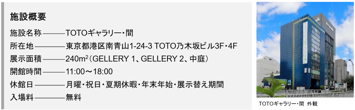 ▶展覧会の詳細は、TOTOギャラリー・間ホームページをご覧ください。