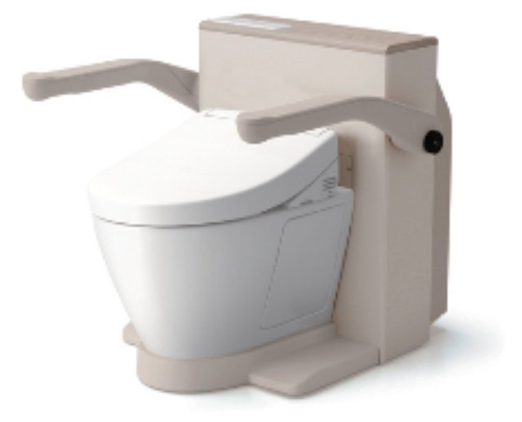 ベッドのそばに設置できる、移動可能な水洗トイレです。高齢者や障がいのある方に排せつの自立を促し、生き生きと生活できるよう支援します。トイレへの移動介助や見守りといった介護者の負担を軽減し、水洗式トイレのため汚物の処理も不要です。
