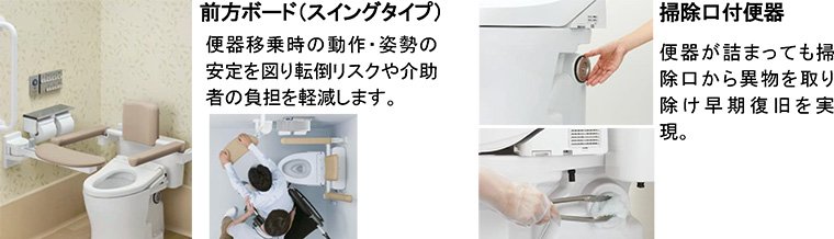 そのほか、便器きれい・ノズルきれい等トイレのきれいが長続きする機能を搭載。