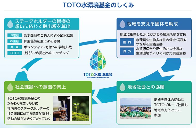 TOTO水環境基金とのかかわりをきっかけに、社内外のステークホルダーの社会課題に対する意識が 向上し、活動の輪が大きく広がっていきます。