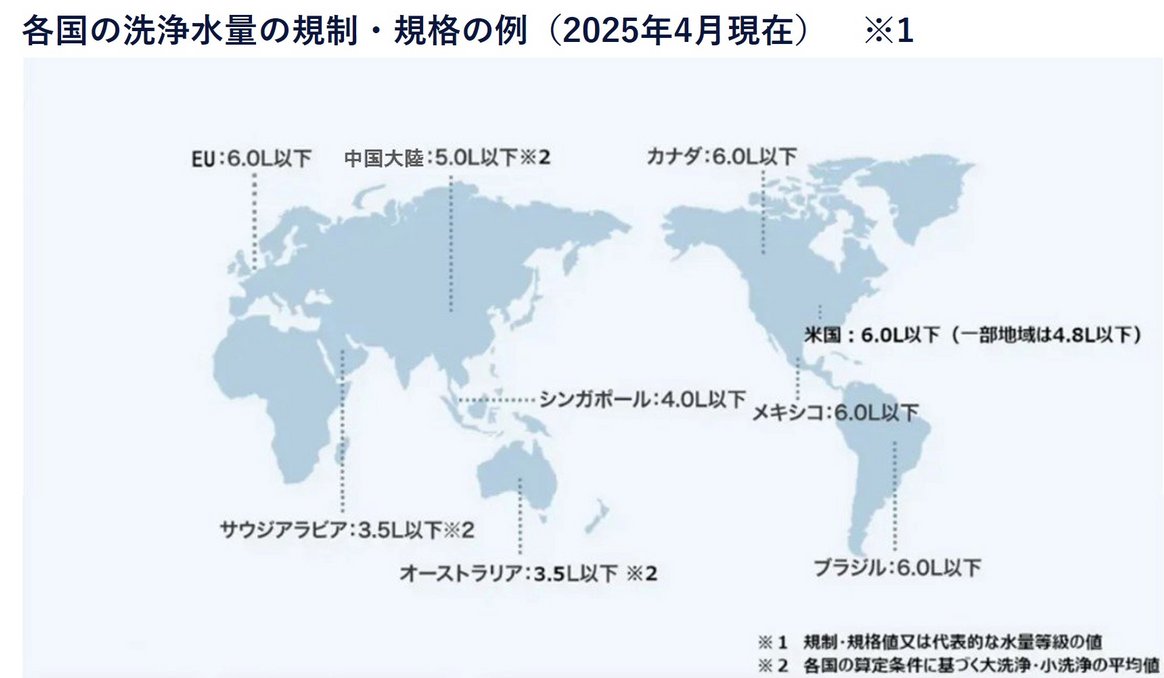 日本ではトイレで使う水量の規制はありませんが、世界では、水不足の影響を受けて、トイレの洗浄水量に規制が設けられているところもあります。