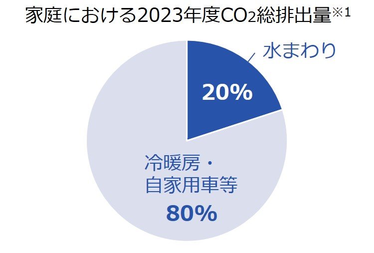 また、家庭におけるCO2排出量のうち、約5分の1が水まわりから排出されています。