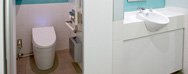 Electricity, gas, air, and water usage in each plant is measured and managed for each process. Environmental improvement activities are also leveraged by introducing the BEAMS* energy management system to quantify efficiency. *BEAMS (Building Environment and Energy Advanced Management System) | The common bathrooms have state-of-the-art water-saving equipment that can also be used as a showrooms. |
