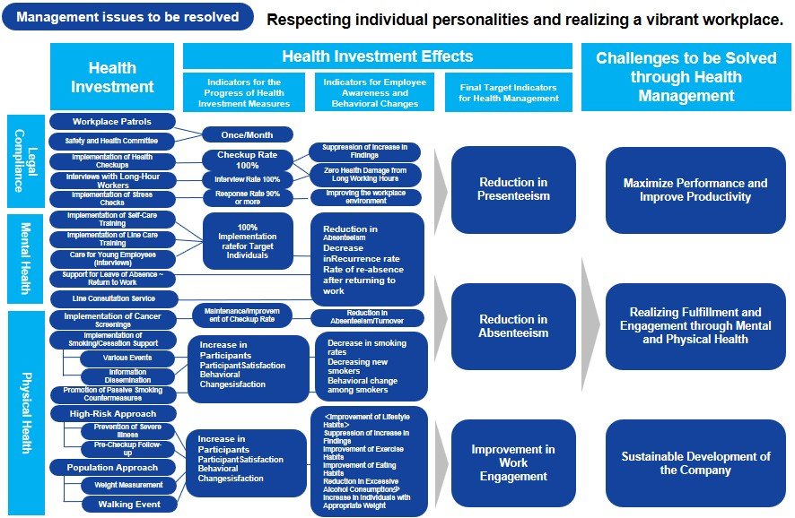 To that end, believing the most important asset is employees, we will strive to maintain and improve the health of employees and their families from a long-term view.