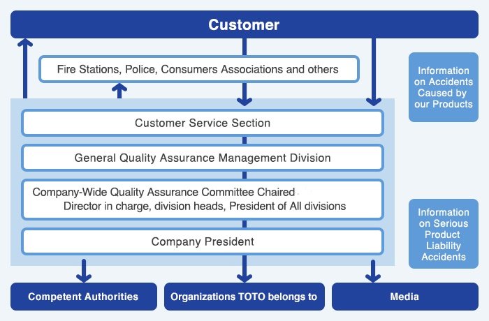 Further, TOTO Group accumulates the information on defects and repairs that occur to products that customer have purchased, and which have been manufactured and sold by TOTO, and used to further improve the quality and safety of new products, and to improve existing products, throughout the TOTO Group.