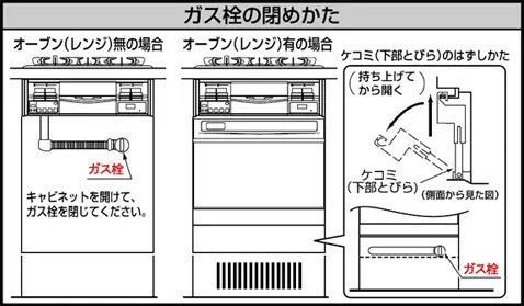 ① 数回操作しても消火せずに火がついたままの場合は、ガス栓を閉めて下さい。