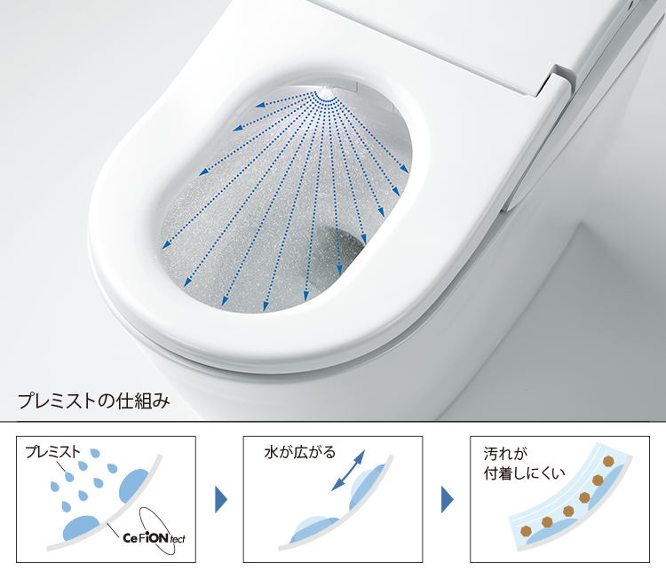 つまり、これまでのトイレになかった「便器を一番きれいに使える方法をトイレ自身が自動でやっている」。そんな機能です。こうした機能が生まれたのも、セフィオンテクトやフチなし便器など、便器を最大限きれいにするためにあらゆる努力を積み重ねてきた結果と言えるかもしれません。