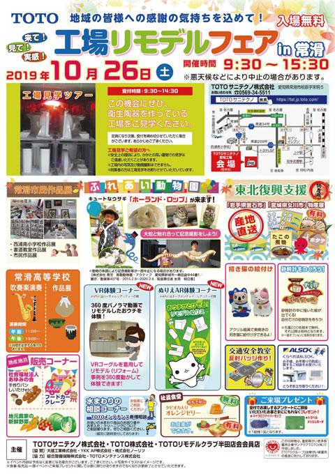 | 場所 | TOTOサニテクノ株式会社 愛知工場 愛知県常滑市桧原字来明5 地図はこちら アクセスなどの詳細は チラシPDFをご覧ください。 |