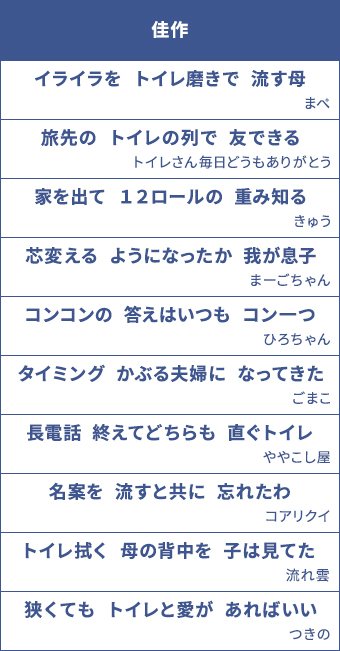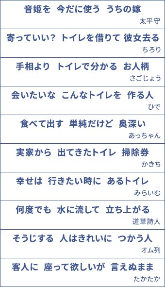 トイレをテーマとした川柳の名作・傑作が集まりました。