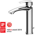 日本刀を想起させるV字型吐水口。 鋭さが美しいデザインです。 |