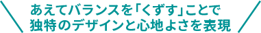 ひと手間かけた工芸品のような 非対称のフォルム。 心地よさを表現しています。 |