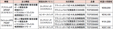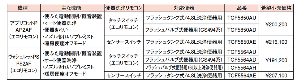 8月新商品発売 アプリコットP・ウォシュレットPS |
