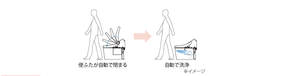 便座から立ち上がると、便ふたが自動で閉まり、その後便器洗浄します。