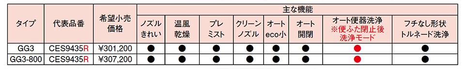 自動で便ふたが閉まった後 自動で便器洗浄するモードが新登場! GG3/GG3-800 |