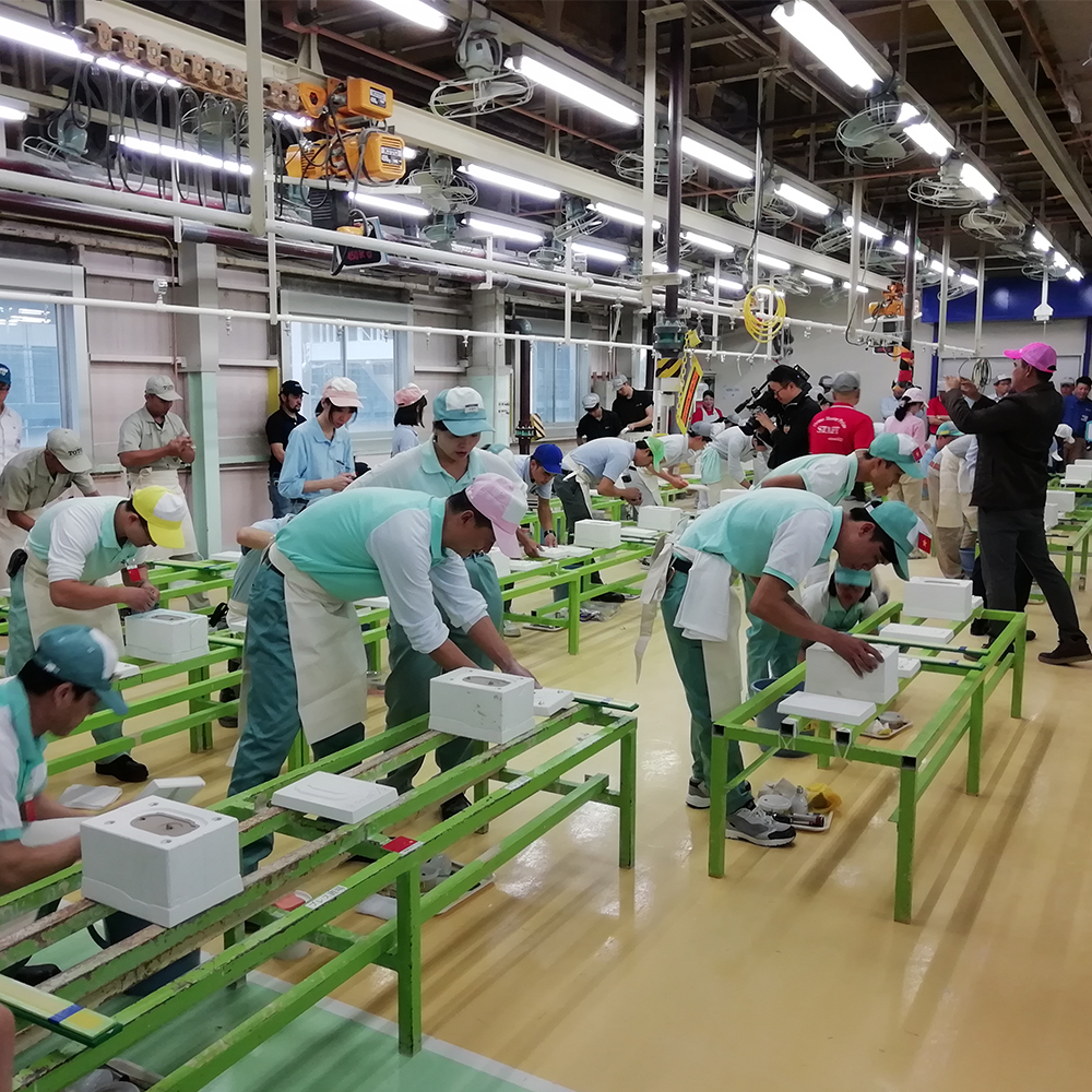 衛生陶器をつくる難しさは、粘土質の素地を焼成する際の形状や収縮の制御です。成形から焼成の段階でミリ単位の制御を行い、社是に掲げられた「良品と均質」を実現できるように、ものづくりに取り組んでいます。また、施釉や成形の技能を競い合う衛陶技能選手権などをグローバルで開催し、100年以上受け継がれてきた手づくりの技を継承・向上していることは大きな強みになっています。併せて、生産現場にAIなどの最新技術を導入し、スマートファクトリー化を推進しています。グローバルに供給拠点を展開するにあたって大切にしているのは「その国・地域のTOTOになる」ことです。