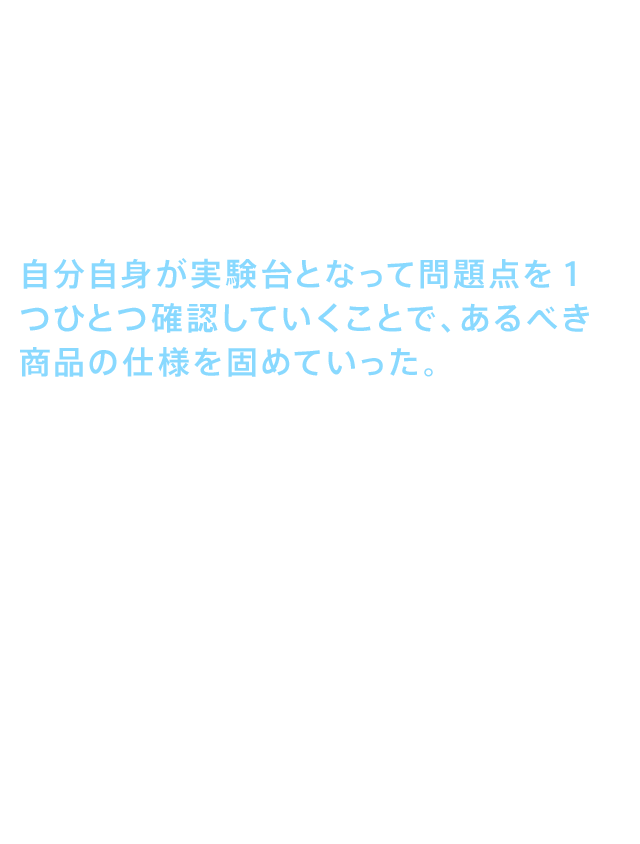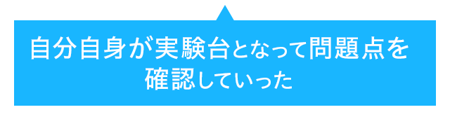 • 自分自身が実験台となって問題点を確認していった