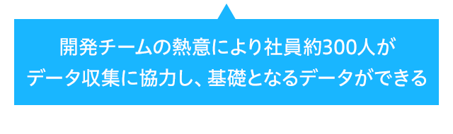 • 開発チームの熱意により社員約300人がデータ収集に協力し、基礎となるデータができる